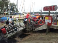 Ist eine ganz nette Überfahrt, aber der Preis ist unverschämt (8,50€). Die Alternative heißt: über Anklam einen unspektakulären Bogen von ca. 25 km machen. Typisch, norddeutsch, freundlich konnte man den Kapitän auch nicht nennen, der einem auf die freundliche Frage, was es mit der Zecheriner Brücke auf sich hat, wortlos eine Broschüre hinschmiss.