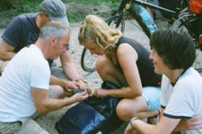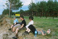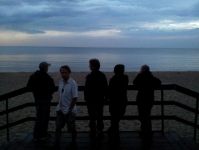 Der Samstag begann mit ein wenig Nieselregen, wurde dann aber immer besser. Wieder etwas verspätetet (warum wohl? ;-) radelten wir den Küstenradweg bis nach Swinemünde (Swinoujscie). In der geschäftigen, aber nicht sehr schönen Stadt genossen wir erst mal im Strandkaffee und bei herrlichem Wetter polnische Kaffees und Bierchen. Weiter ging's mit der kostenlosen Fähre über die Swina und auf dem Ostseeradweg R10 durch das vielbevölkerte Kurbad Miedzyzdroje bis zu unserem Ziel bei Kolczewo. Der Radweg führte eigentlich sehr schön durch Wälder, was aber auch anstrengend war und uns blöderweise die letzten 15 km auf einer Landstraße abkürzen ließ (Nie wieder!!). Was gutes hatte es aber doch: auf dem Campingplatz Tramp bei Kolczewo kamen wir rechtzeitig an, um noch die Zelte aufzustellen und dann einem richtig schönen Regenguss zuzuschauen. Der Abend wurde noch richtig schön und lustig am Ostseestrand und später bei Livemusik und ein paar Tropfen Bier und Wodka.
