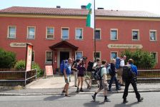 Ab jetzt ging’s aufwärts. Der Tageshöhepunkt hieß „Töpfer“ auf 582 Metern Höhe. Der Weg dahin ließ auch den letzten merken, daß das keine Spaßwanderung wird, sondern ganz schön sportlich. Oben angekommen und den Kamm langmarschiert boten sich herrliche sommerliche Blicke auf die Landschaft des Zittauer und des Isar-Gebirges. Am Abend fanden wir in Jonsdorf eine sehr schöne Herberge vor und – vor allem – wurden wir mit frischem Grillgut kulinarisch verwöhnt und gestärkt. So klang ein herrlicher Sommerabend bei einem netten Feuerchen aus.