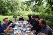 So schön und rundum versorgt wie der Abend war dann auch der Morgen: super Wetter und Frühstück! Heutiges Ziel war die „Lausche“, der höchste Berg des Zittauer Gebirges mit 793 Metern. Der Anstieg da rauf war wunderbar schweißtreibend und artete in einem sportlichen Wettkampf aus. Aber es lohnte sich, die Aussicht war klasse und weit! Nach der kulinarischen Stärkung am Fuße des Anstiegs in einer Gastwirtschaft - wo der Wirt einige von uns kannte und andersrum - bestand der andere Teil des Tages aus einer Wanderung nach Jonsdorf und der gemütlichen Fahrt zurück nach Zittau mit der Zittauer Schmalspurbahn.