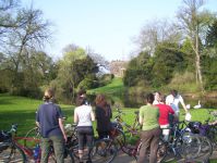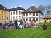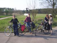 Am Samstag weckte uns wieder schönster Sonnenschein und machte Lust auf die kleine und große geführte Radtour, südlich der Elbe. Doch dahin mussten wir erst einmal gelangen, da die Elbe Hochwasser führte und daher die Fähre außer Betrieb war. Mit dem allgegenwärtigem Auf die Räder! fuhren wir durch die Kliekener Aue mit Störchen, Graureihern, Kormoranen, Bibern, zum Biberfreigehege, in welchem man u.a. durch eine Glaswand in den Biberbau schauen konnte, in welchem gerade zwei Biberkinder von schon stattlicher Größe schliefen, ins Örtchen Vockerode mit Kirchlein und benachbartem ehemaligen Kraftwerk, in dem im Sommer die Tanzcompanie von Gregor Seyffert aus Dessau imposant die Geschichte von Marquis de Sade erzählt. Die große Tour steuerte nun Ferropolis - die Stadt aus Eisen, den ehemaligen Tagebau von Gräfenhainichen, an, auf dessen Gelände einige riesige Abraum- und Kohlebagger zu besichtigen waren. Im Sommer finden hier zahlreiche Konzerte vor großartiger Kulisse statt. Nach der Mittagspause umradelten wir den ausgebaggerten, schon fast wieder mit Wasser gefüllten, Tagebau und nahmen Kurs auf Wörlitz, den wunderschönen, in der 2. Hälfte des 18. Jh. unter Fürst Leopold III. Friedrich Franz von Anhalt/Dessau gegründeten Landschaftspark. Diesen durchquerten wir per Pedes, ließen den Blick über Brücken, Kanäle, Tempel, Grotten, Sichtachsen schweifen und uns manche Anekdote von Torsten darüber erzählen. Über den Fürst-Franz-Weg fuhren wir an der Elbe zurück nach Coswig. Da die Fähre außer Betrieb war, mussten beide geführte Touren einen Umweg von insg.15 km machen und somit hatten die Teilnehmer/-innen der großen Tour am Ende 80 km in den Beinen und auch die der kleinen Tour nach Wörlitz, bei der alle Kinder mitfuhren, immerhin stolze 50 km! Der Abend wurde bei Sport und Spiel, gutem Essen, Schwedenfeuer und natürlich der Rallye-Planung verbracht.