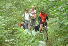 Pünktlich beginnt unsere Tour, die uns zunächst mit Rückenwind auf herrlichen Radwegen/routen führt. Eine Mühle am Wegesrand wird angesteuert. Und weiter geht es in das Freilichtmuseum Groß Raden. Hier befindet sich der Nachbau eines Slawendorfes mit angeschlossenem Museumsbau. Das Wetter lädt zum Baden ein, und da wo einst die Slawen ihre Netze zum fischen auswarfen springen wir ins kühle Nass. Die Rückfahrt war von landschaftlicher Schönheit geprägt. Wälder und Seen wechselten während einer ständigen Berg- und Talfahrt. Sandiger Boden erfordert viel Geschick beim Fahren und Carsten ist nur noch mit einer versprochenen Rast bei Kaffee und Kuchen zu motivieren.