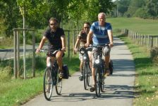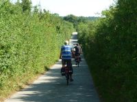 Pünktlich beginnt unsere Tour, die uns zunächst mit Rückenwind auf herrlichen Radwegen/routen führt. Eine Mühle am Wegesrand wird angesteuert. Und weiter geht es in das Freilichtmuseum Groß Raden. Hier befindet sich der Nachbau eines Slawendorfes mit angeschlossenem Museumsbau. Das Wetter lädt zum Baden ein, und da wo einst die Slawen ihre Netze zum fischen auswarfen springen wir ins kühle Nass. Die Rückfahrt war von landschaftlicher Schönheit geprägt. Wälder und Seen wechselten während einer ständigen Berg- und Talfahrt. Sandiger Boden erfordert viel Geschick beim Fahren und Carsten ist nur noch mit einer versprochenen Rast bei Kaffee und Kuchen zu motivieren.